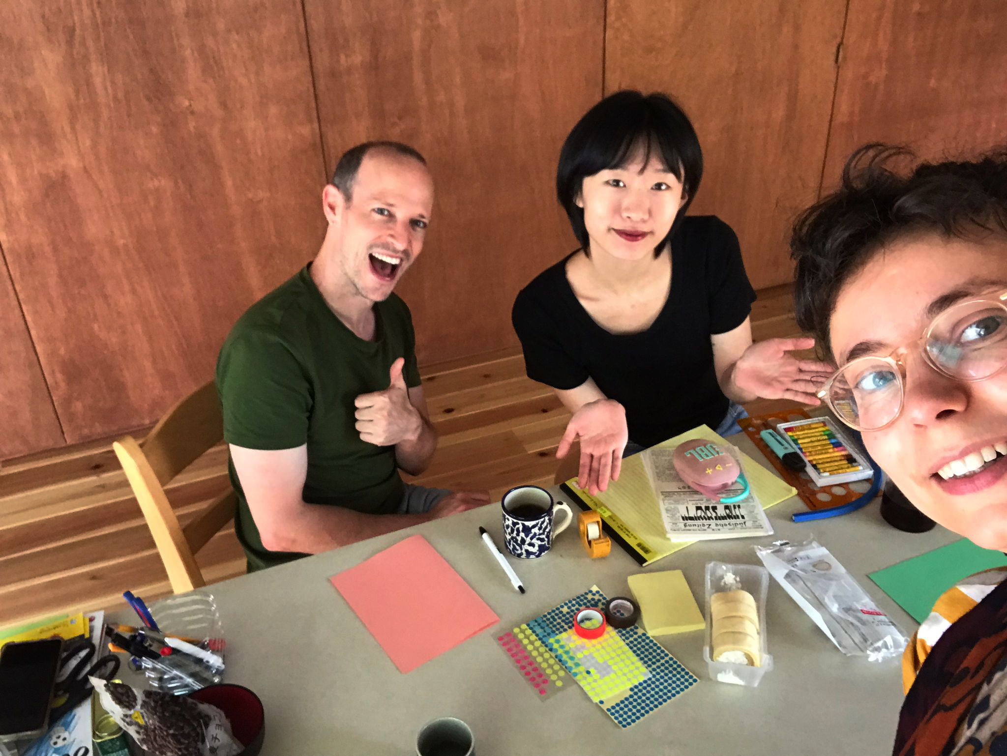 I am one of three participants in the H-AIR residency, and a significant part of this month has been the time spent with Britt and Sujin. It has been an honor to share this experience with these two talented artists, and I was very thankful (and relieved) to find out that they’re also fun and lovely to spend time with. Having Shizuka around as well was a huge bonus! On one occasion, Britt initiated and led a zine-making session for our projects, which was extremely valuable. I shared some of my knowledge about AR in preparation for the exhibitions planned for the coming months.