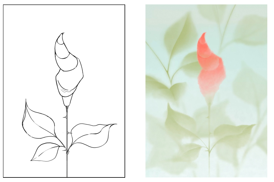 右のデザイン:よりシンプルな描き方にすることで、細かいディテールとの対比が面白い表現になるかもしれません。