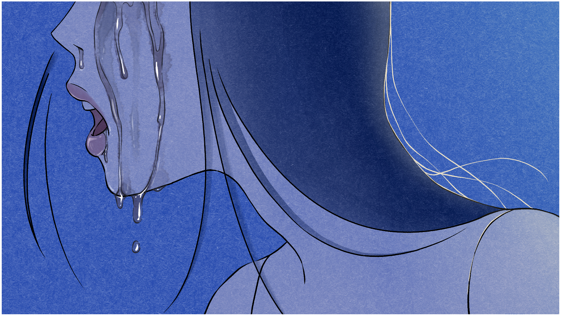 主人公の心が恋愛を通じて徐々に柔らかくなっていく様子を表現するために、水彩技法を試しました。しかし、思ったような効果が得られず、時間的効率も良くなかったため、他の彩色方法も試してみる予定です。